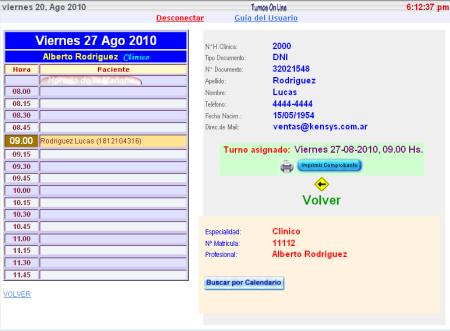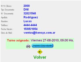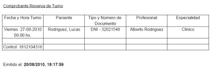 Listo! el turno fue reservado, y lo podemos ver en la siguiente pantalla